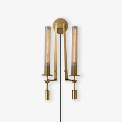 Brass Glass Tube Plug-in Wall Lamp