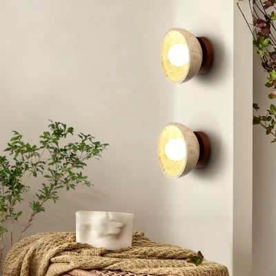Round Travertine Wall Lamp