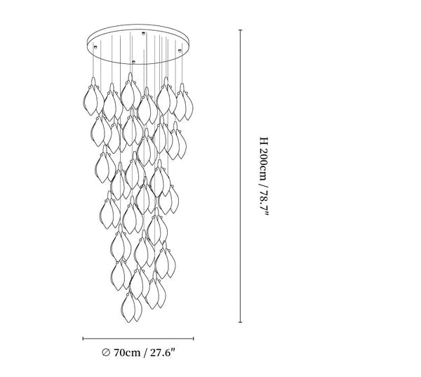 28-Lichter A Größe: Durchmesser 70 cm x Höhe 200 cm / ∅ 27,6″ x H 78,7″ (G4 Glühbirnen x 28 Stück) (Leistung: ~140W)