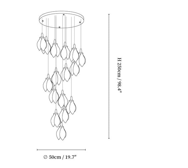 16-Lichter B Größe: Durchmesser 50 cm x Höhe 250 cm / ∅ 19,7″ x H 98,4″ (G4 Glühbirnen x 16 Stück) (Leistung: ~80W)