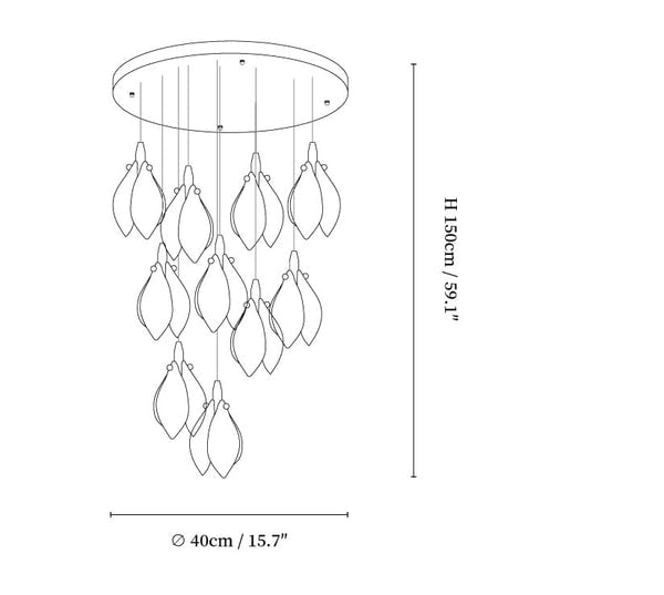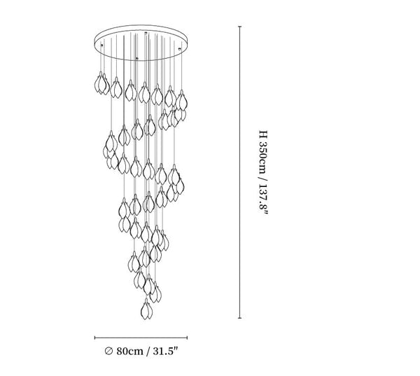 40-Lichter B Größe: Durchmesser 80 cm x Höhe 350 cm / ∅ 31,5″ x H 137,8″ (G4 Glühbirnen x 40 Stück) (Leistung: ~200W)