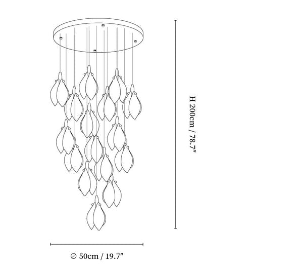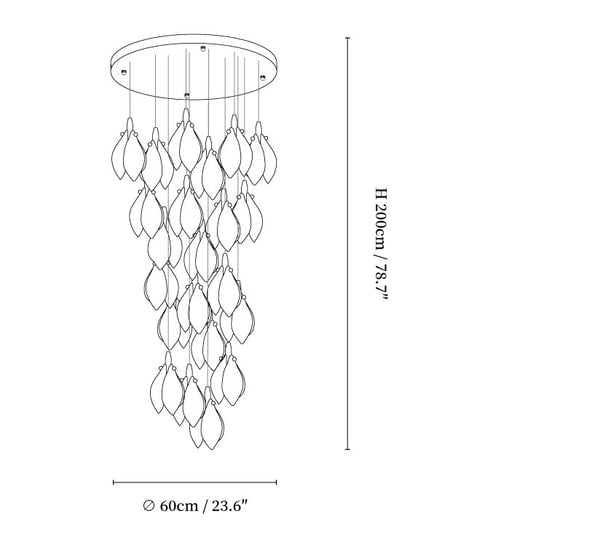 22-Lichter A Größe: Durchmesser 60 cm x Höhe 200 cm / ∅ 23,6″ x H 78,7″ (G4 Glühbirnen x 22 Stück) (Leistung: ~110W)