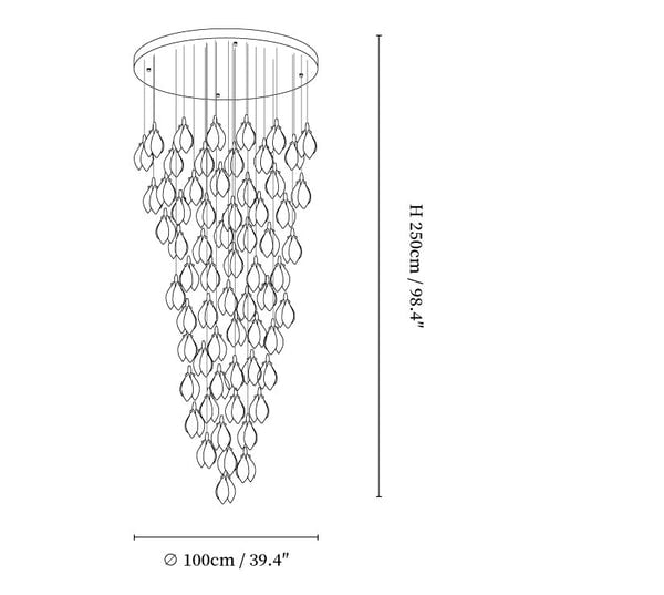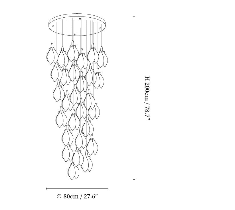 40-Lichter A Größe: Durchmesser 80 cm x Höhe 250 cm / ∅ 31,5″ x H 98,4″ (G4 Glühbirnen x 40 Stück) (Leistung: ~200W)