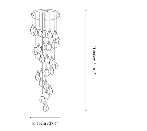 28-Lichter B Größe: Durchmesser 70 cm x Höhe 300 cm / ∅ 27,6″ x H 118,1″ (G4 Glühbirnen x 28 Stück) (Leistung: ~140W)