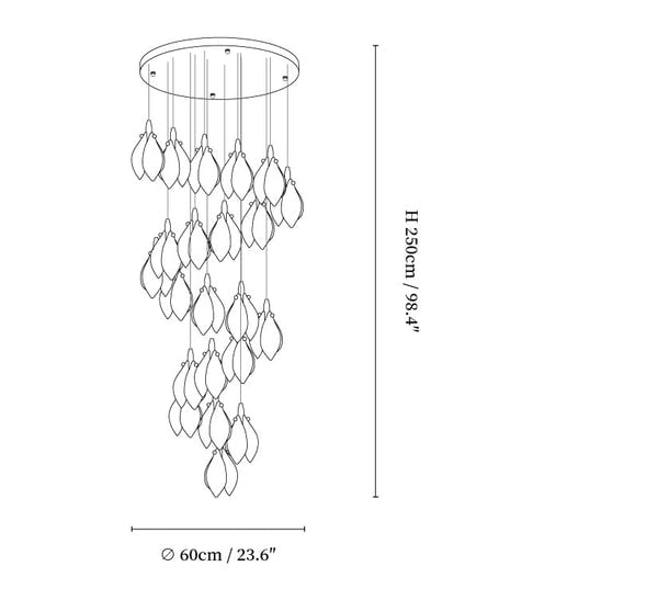 22-Lichter B Größe: Durchmesser 60 cm x Höhe 250 cm / ∅ 23,6″ x H 98,4″ (G4 Glühbirnen x 22 Stück) (Leistung: ~110W)