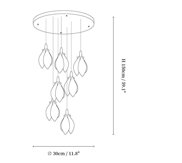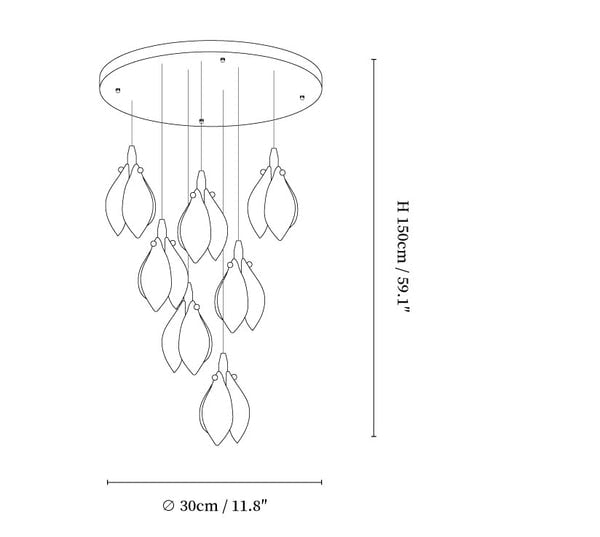 Die Standardlänge des Aufhängungskabels beträgt ca. 100–150 cm. Längere Kabel (bis zu 800 cm) sind auf Anfrage ohne Aufpreis erhältlich. Bitte hinterlassen Sie eine Notiz an der Kasse oder kontaktieren Sie uns im Voraus, wenn Sie eine Anpassung wünschen.