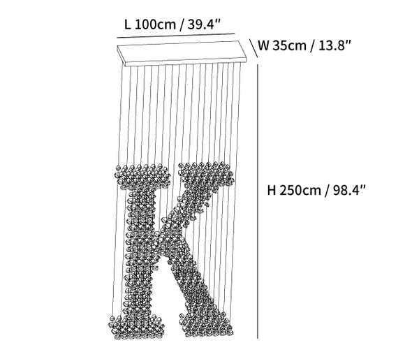Buchstabe K Größe: L 100 cm x B 35 cm x H 250 cm / L 19.7″ x B 13.8″ x H 98.4″