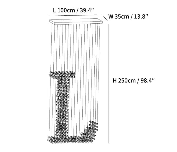 Die Standardlänge des Aufhängungskabels beträgt ca. 100–150 cm. Längere Kabel (bis zu 800 cm) sind auf Anfrage ohne Aufpreis erhältlich. Bitte hinterlassen Sie eine Notiz an der Kasse oder kontaktieren Sie uns im Voraus, wenn Sie eine Anpassung wünschen.