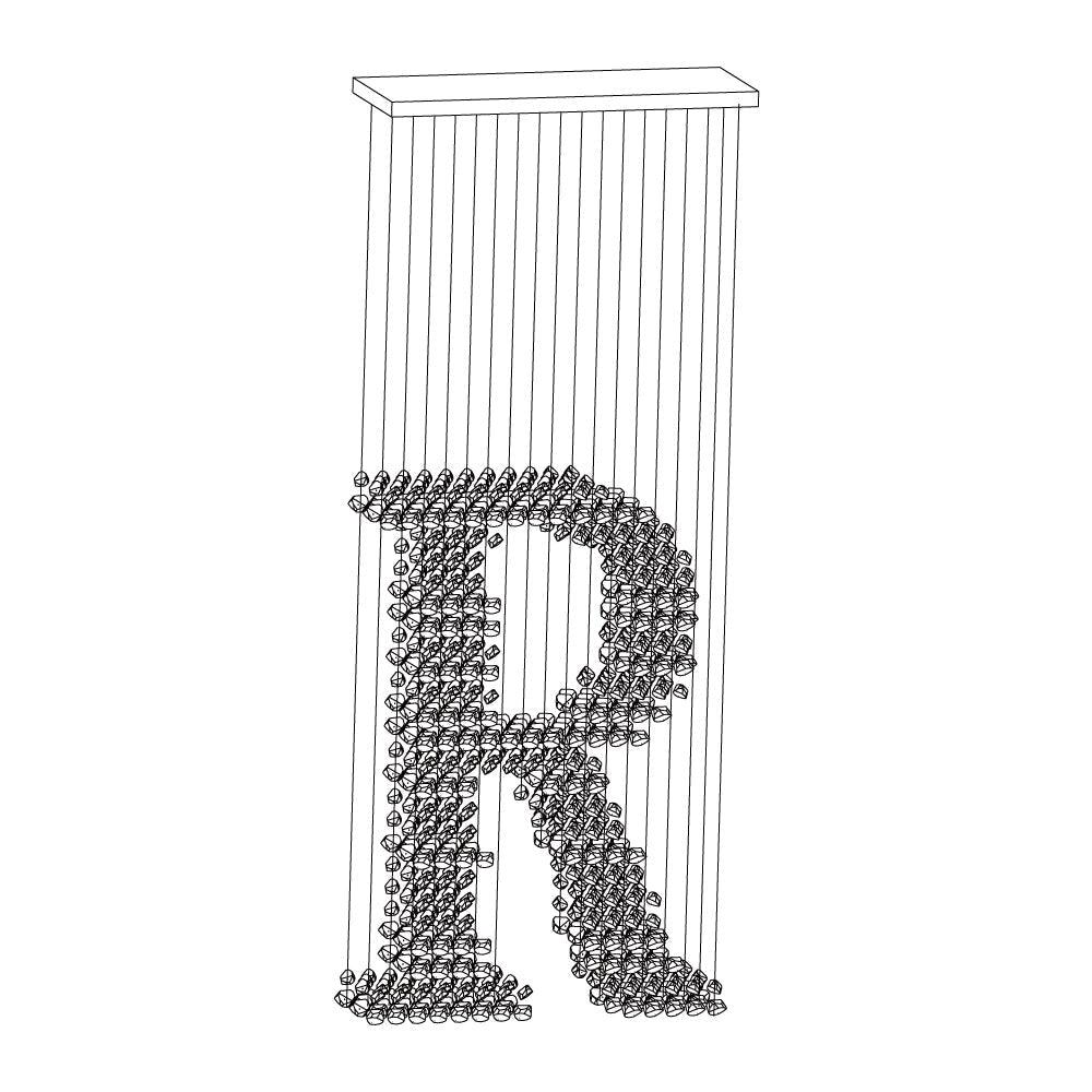 Beginnend mit einem Stück Kohle erstreckt sich das für diesen Kronleuchter gestaltete Kunstwerk in eine lineare Komposition, bevor es sich ausbreitet und den Raum einnimmt. Es vermittelt die Idee, dass alles miteinander verbunden ist und das Universum in einem einzigen Punkt gefunden werden kann. Das Konzept ist prägnant und verständlich.