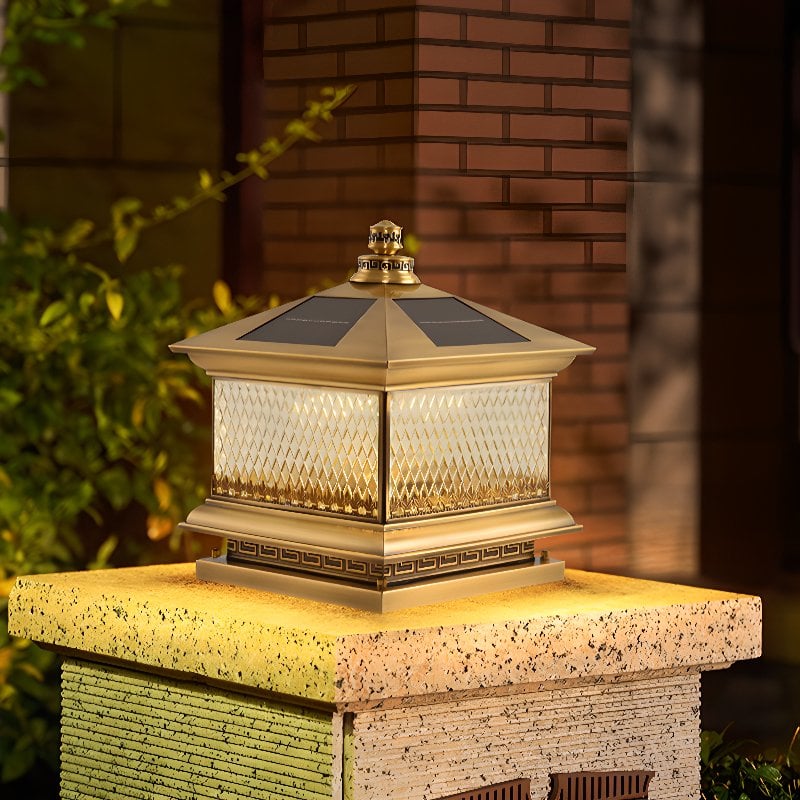 Elegant und umweltfreundlich, das Solar Diamond Post Light verfügt über ein klassisches Glas mit Diamantmuster, das das Licht wunderschön bricht. Die integrierten Solarpanels machen es sowohl energieeffizient als auch zu einer stilvollen Ergänzung für Außenwege oder Gartenpfosten.