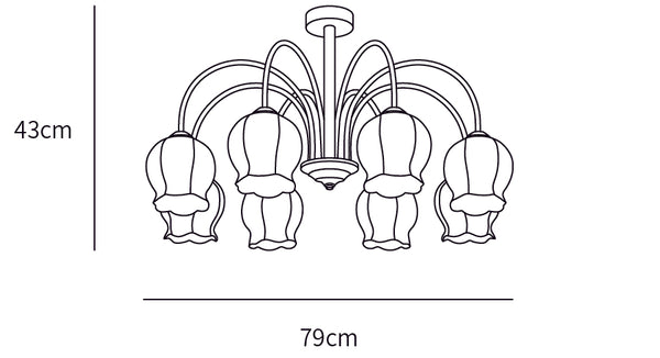 Jeder Glaslampenschirm zeigt filigrane florale Muster, die die Schönheit der Natur in detailreicher Ausführung einfangen. Wenn das Licht durch die Glasschirme scheint, werfen die floralen Muster zarte Schatten in Ihren Raum und schaffen eine romantische und ruhige Atmosphäre. Dieses einzigartige Design macht die Country Floral Chandelier Lampe zum Mittelpunkt jedes Raumes und bringt Komfort und Freude.
