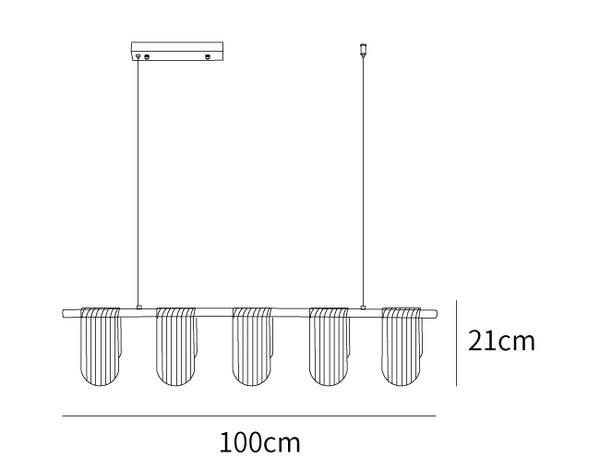 5 Lampen Größe: L 100 cm x B 10 cm x H 21 cm / L 39,4″ x B 3,9″ x H 8,3″