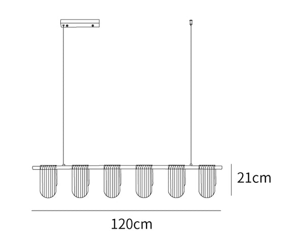 6 Lampen Größe: L 120 cm x B 10 cm x H 21 cm / L 47,2″ x B 3,9″ x H 8,3″