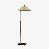 Eine Lampe mit einem Walnussfuß, Messingdetails und dem typischen Faltenschirm. Letzterer streut das Licht wunderbar im Raum, was eine einzigartige Atmosphäre schafft und besonders im Schlafzimmer oder im Wohnbereich zur Geltung kommt.