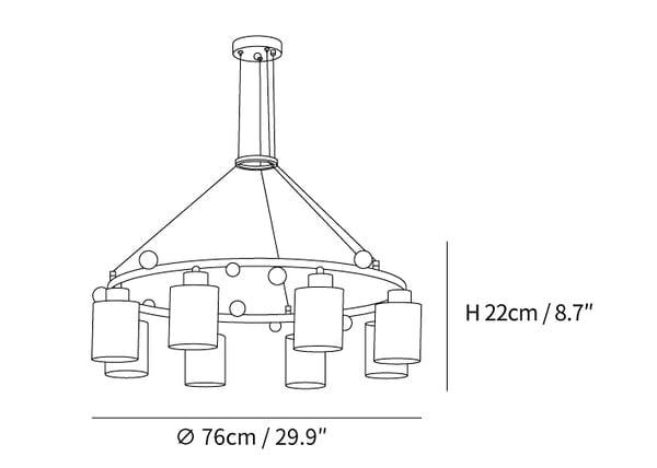 8 Köpfe Größe: Durchmesser 76 cm x H 22 cm / ∅ 29,9″ x H 8,7″