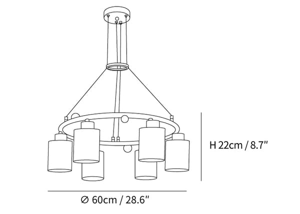 6 Köpfe Größe: Durchmesser 60 cm x H 22 cm / ∅ 23,6″ x H 8.7″