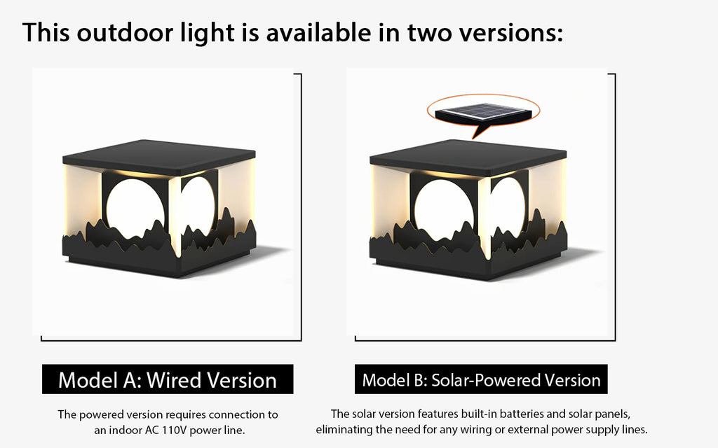 Spannung: AC 110-240V (Verdrahtete Version) / DC 3.2V (Solarbetriebene Version).