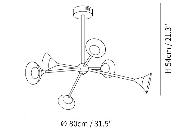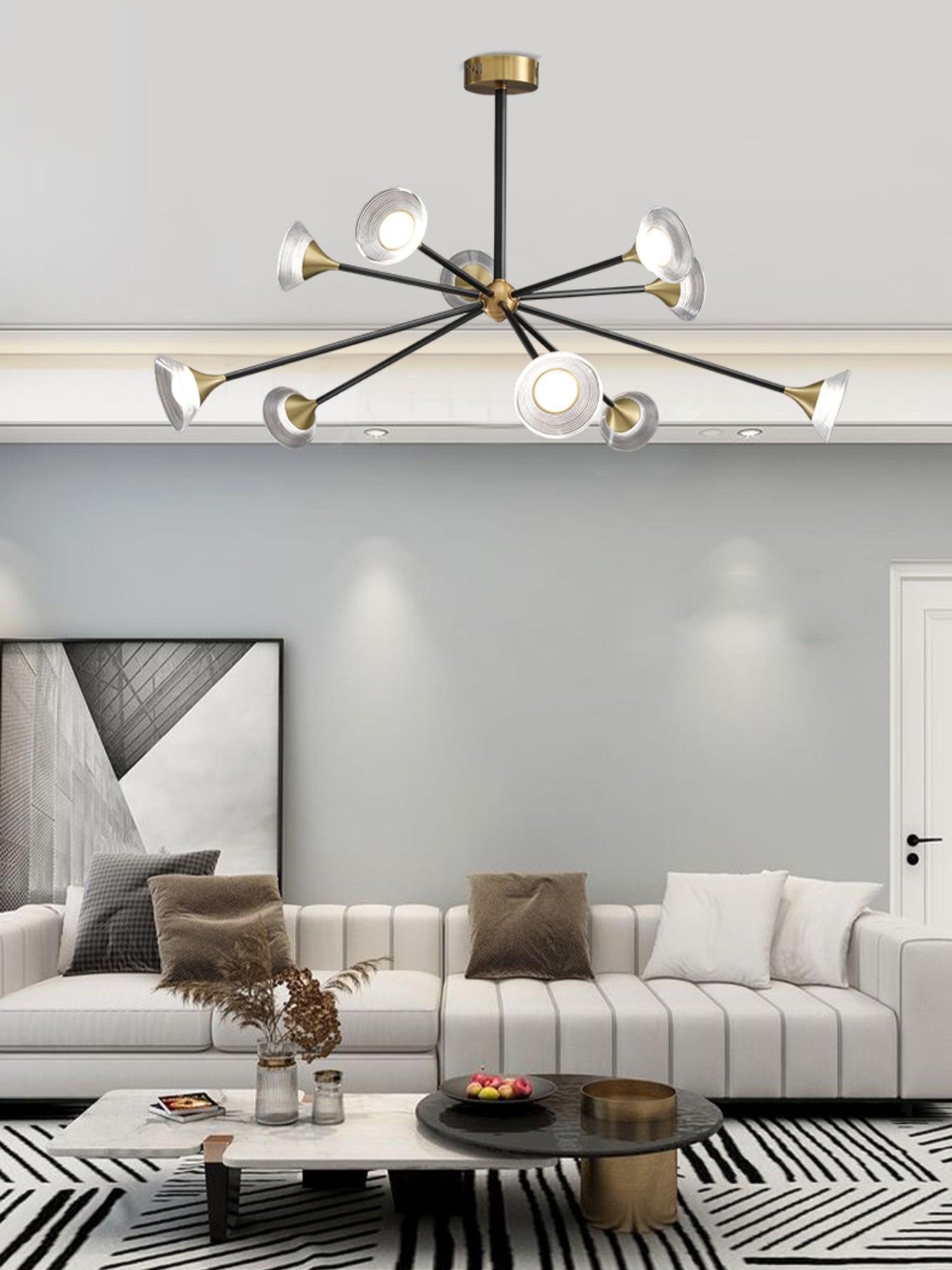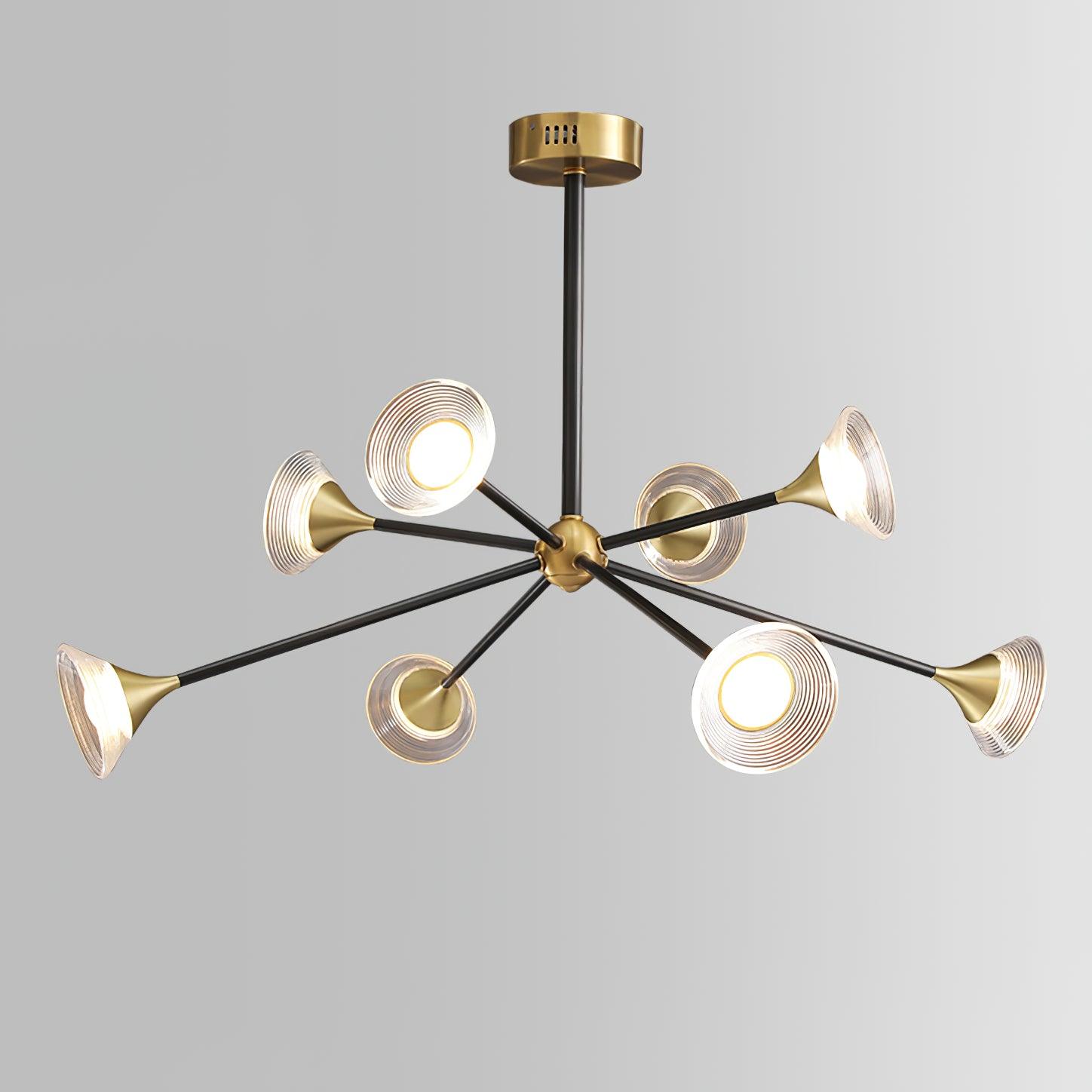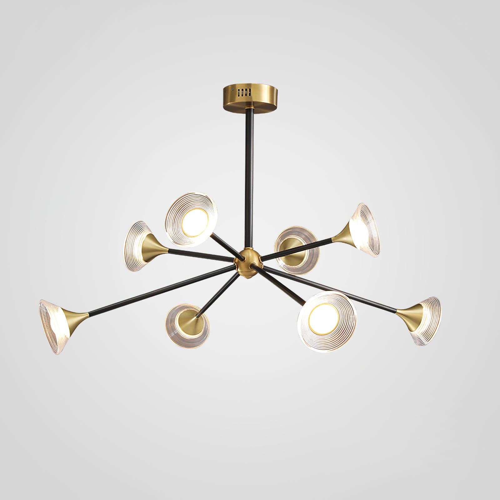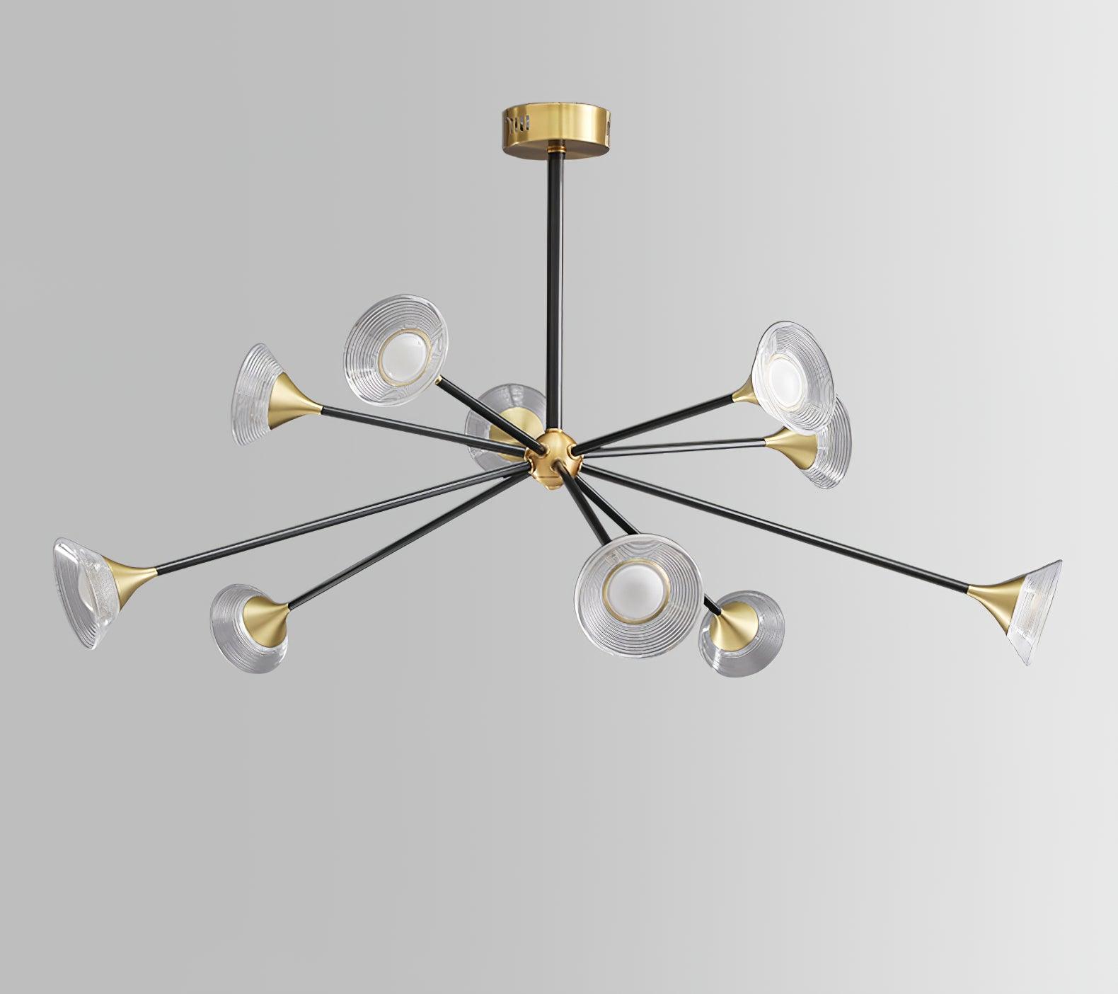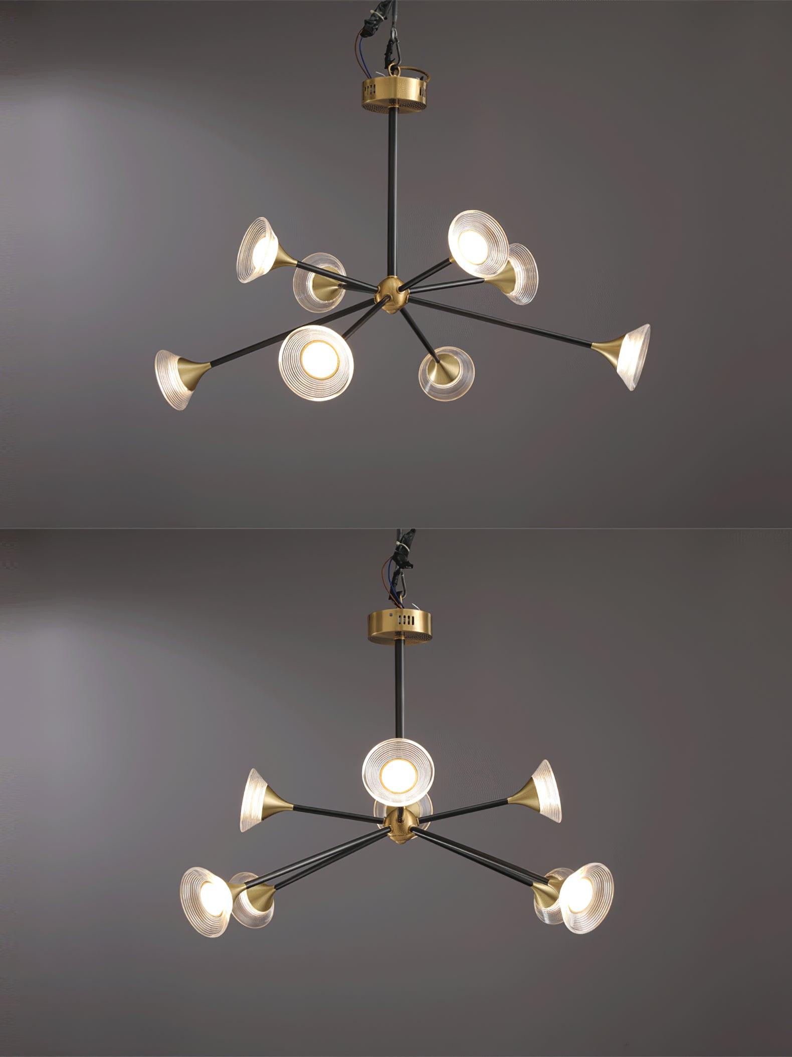 Der Tristan Kronleuchter verleiht jedem Zuhause einen Hauch von Eleganz. Hergestellt aus strapazierfähigem Messing und Acryl, besticht er durch seine einzigartige Trompetenform und das Design mit mehreren Köpfen. Sein raffiniertes und auffälliges Design zieht die Blicke auf sich und schafft eine warme, einladende Atmosphäre in jedem Raum.