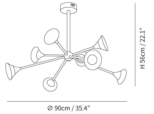 8 Köpfe Größe: Durchmesser 90cm x H 56cm / ∅ 35,4″ x H 22,1″
