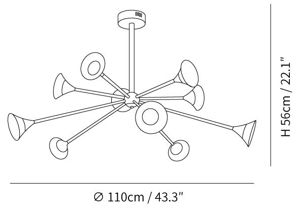 10 Köpfe Größe: Durchmesser 110cm x H 56cm / ∅ 43,3″ x H 22,1″