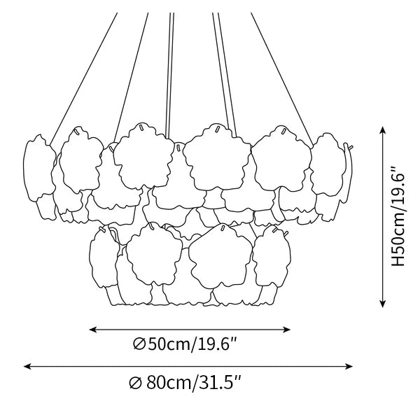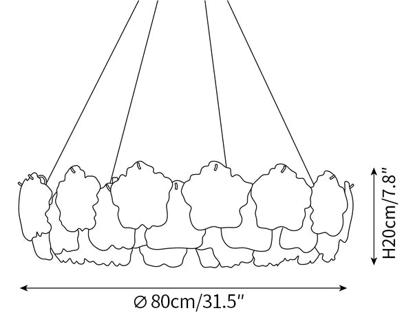Die Standardlänge des Aufhängungskabels beträgt ca. 100–150 cm. Längere Kabel (bis zu 800 cm) sind auf Anfrage ohne Aufpreis erhältlich. Bitte hinterlassen Sie eine Notiz an der Kasse oder kontaktieren Sie uns im Voraus, wenn Sie eine Anpassung wünschen.