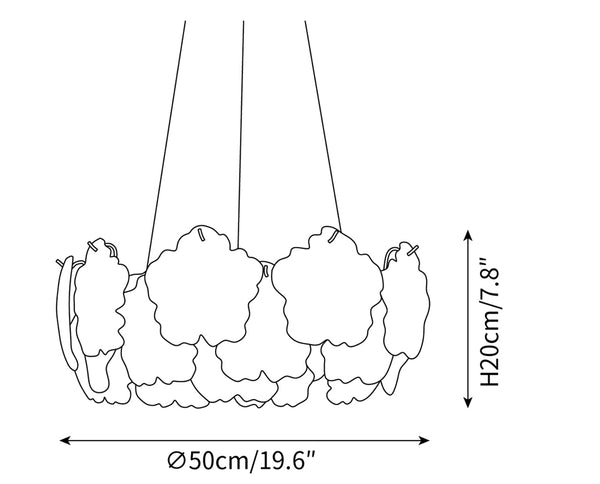 Größe: Durchmesser 50 cm x H 20 cm / ∅ 19,6″ x H 7,8″ (E14*8 Glühbirne)