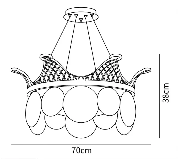Der Vassar Crown Kronleuchter kann frei durch dreifarbige Dimmung gesteuert werden, und eine Vielzahl von Farbtemperaturen schafft unterschiedliche Atmosphären, während das Schalen-Glas sanft einen zarten Glanz offenbart, um verschiedene Beleuchtungsbedürfnisse des täglichen Lebens zu erfüllen.
