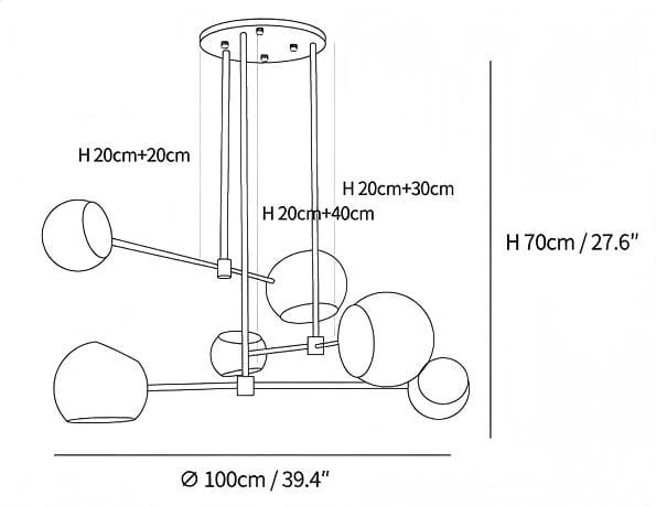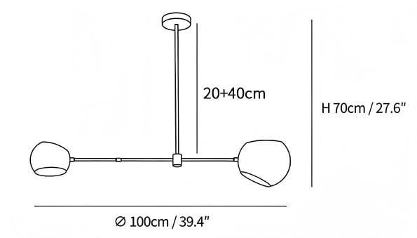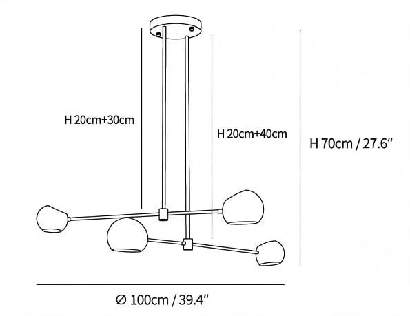 7.9″+11.8″+15.7″ Adjustable hanging height rod. Can be extended upon request.