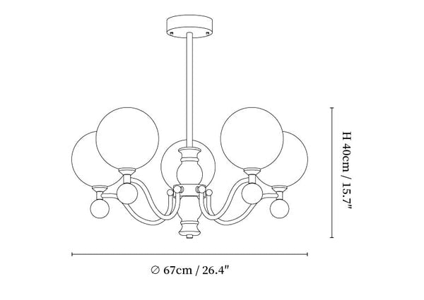 5-lights Size: Dia 67cm x H 40cm / ∅ 26.4″ x H 15.7″