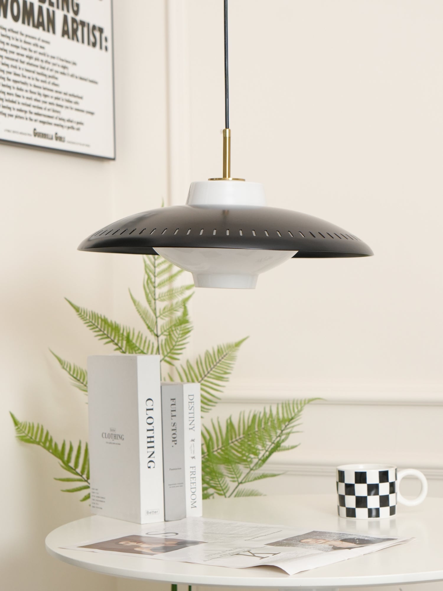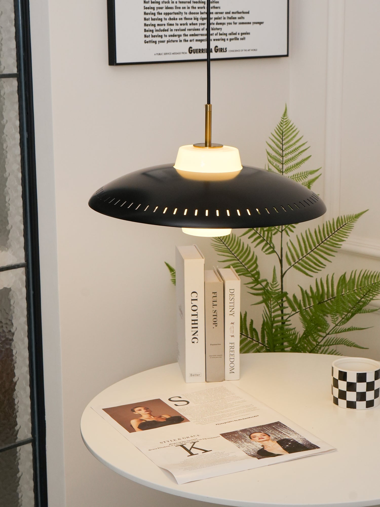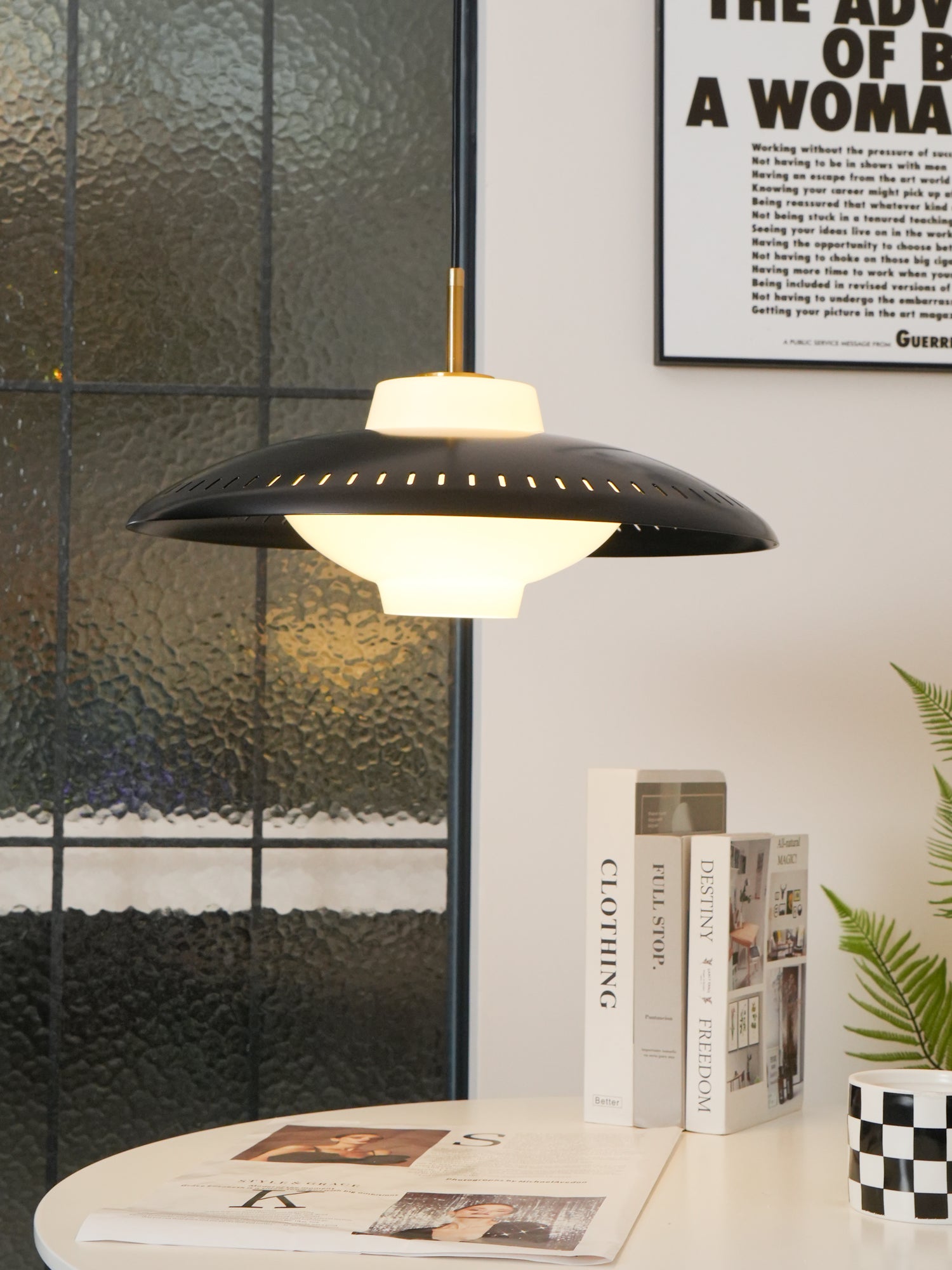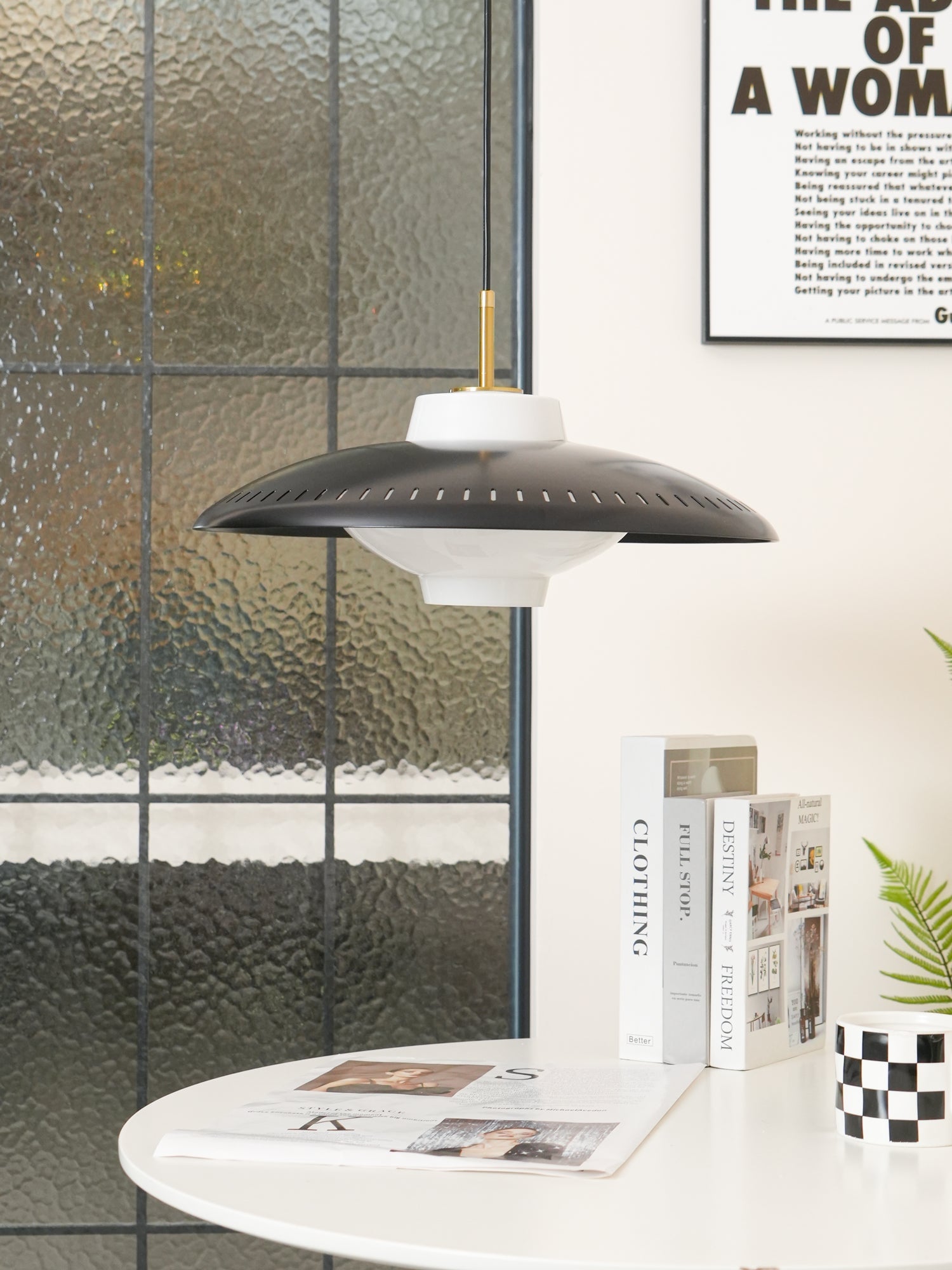 Offering something special in terms of light, internationally renowned lighting designers chose glass as the pendant to create a special warm glow. Combined with the grooves in the wide iron shade, it creates exciting and elegant lighting effects. With its classic shape, exquisite details and high-quality craftsmanship, this pendant becomes a beautiful decoration above or above the dining table, in the hallway or in the corner, creating life and atmosphere.