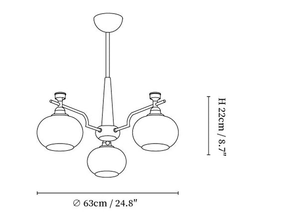 3-Lights Size: Dia 63cm x H 22cm / ∅ 24.8″ x H 8.7″