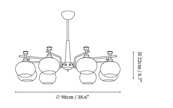 8-Lights Size: Dia 98cm x H 22cm / ∅ 38.6″ x H 8.7″
