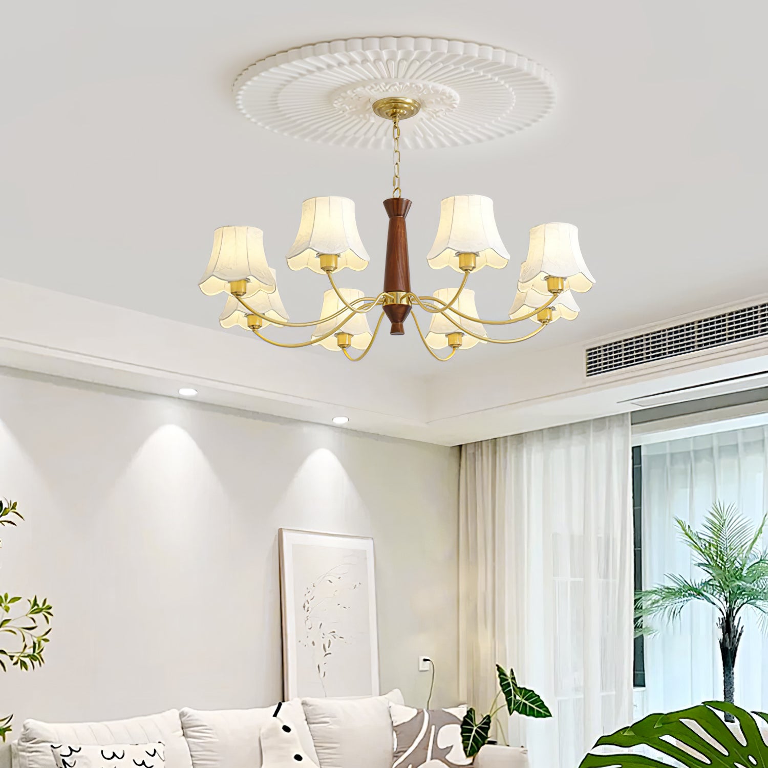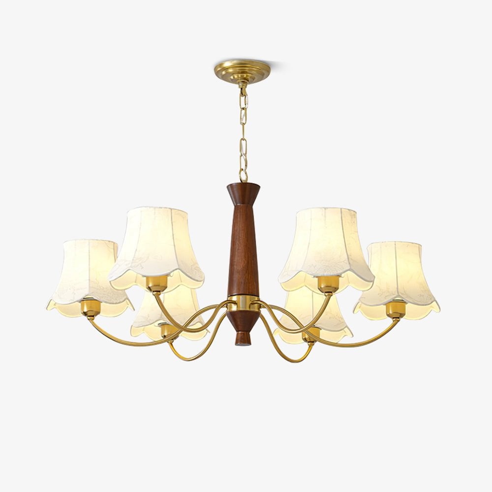 Introducing the Alyssa Fabric Chandelier from Lighting - the perfect modern addition to your living room. Its unique conical design, high-quality printed fabric, and translucent, non-glaring lampshade create a warm and comfortable atmosphere. With a curved arm and high temperature-resistant materials, this chandelier is both functional and easy to maintain.