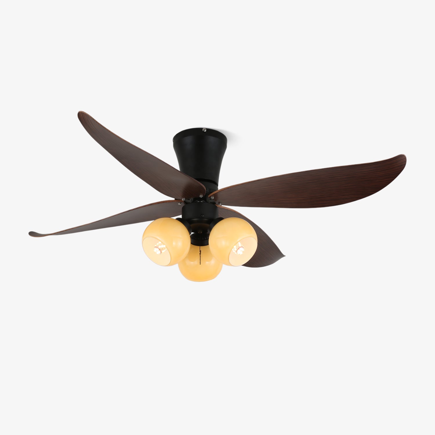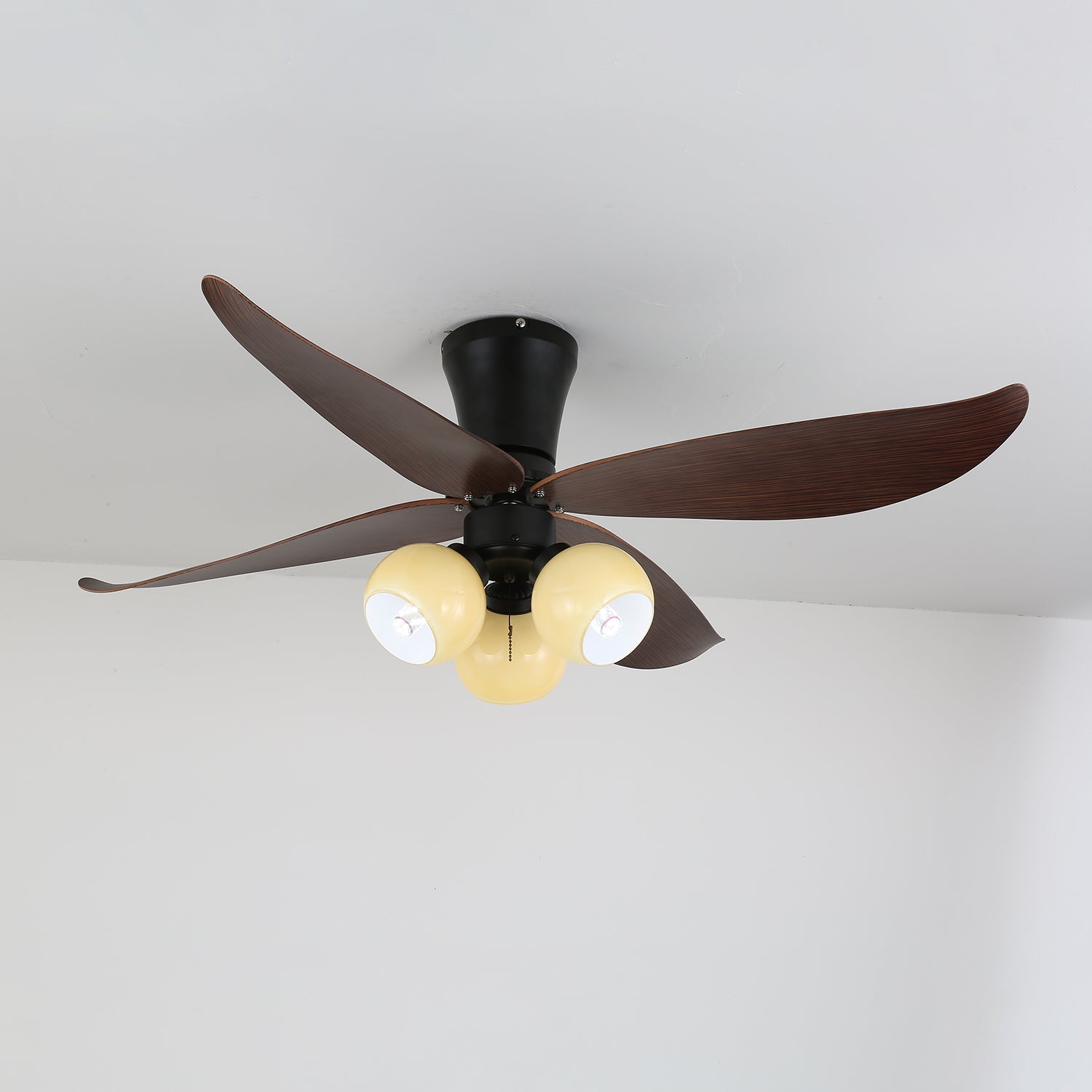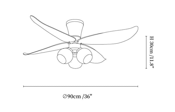 Materials: Metal frame, ABS blades, glass shade, pure copper motor.