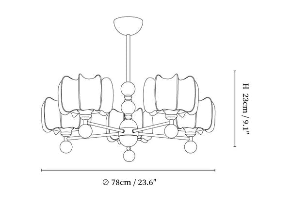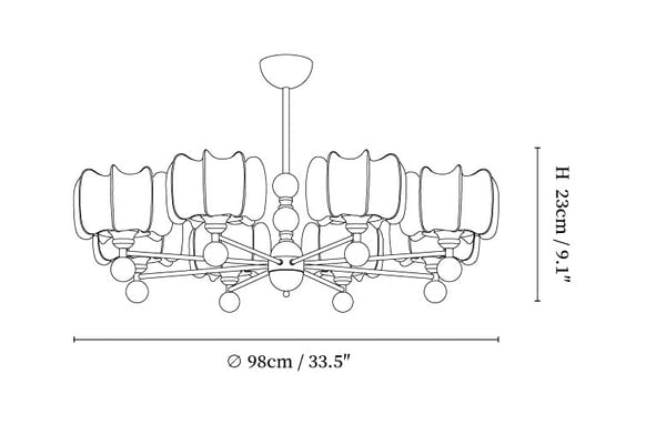 8-lights Size: Dia 98cm x H 23cm / ∅ 33.5″ x H 9.1″