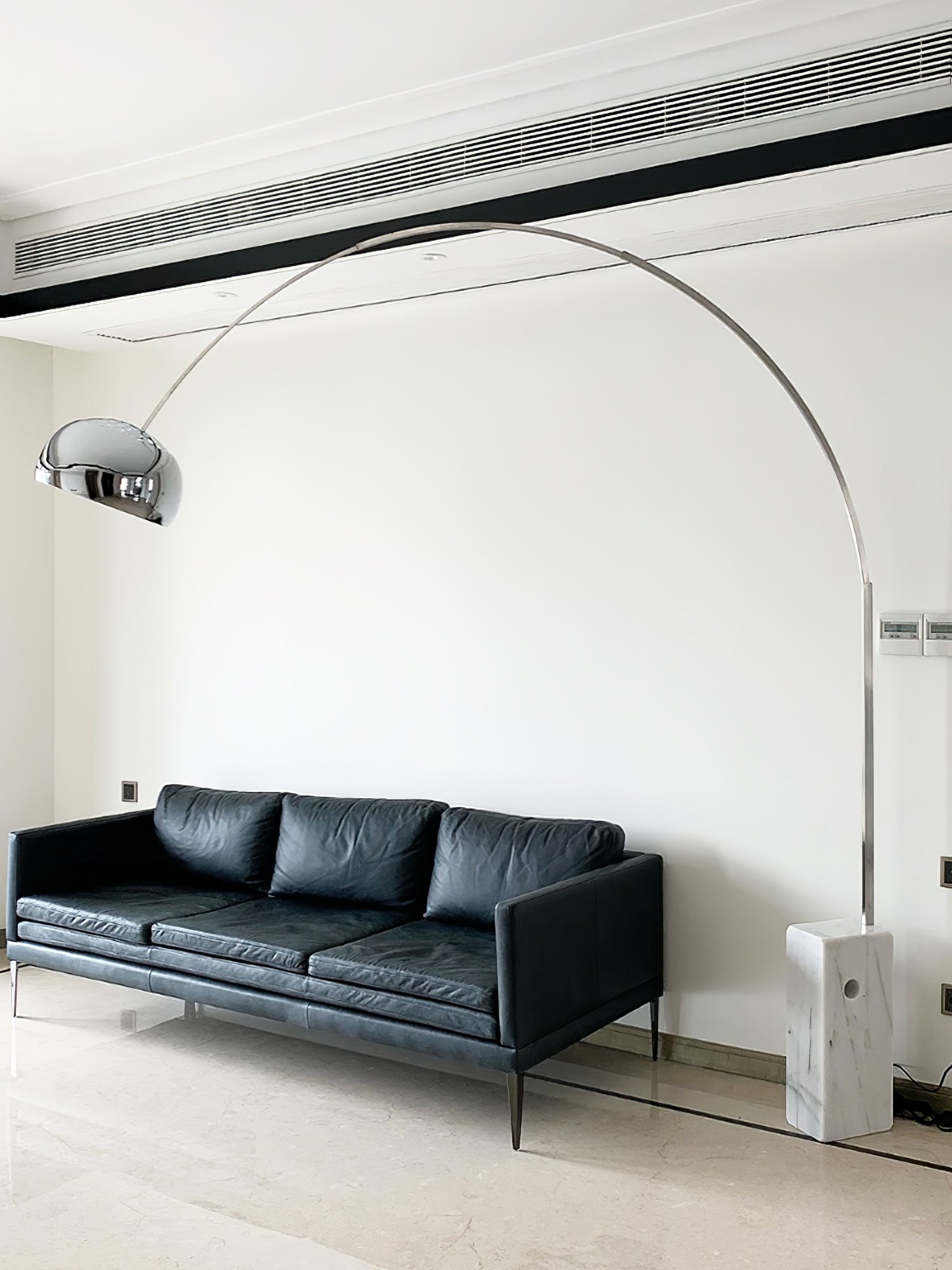 The Arcadia Luxe Floor Lamp stands as a modern design classic. Crafted with meticulous attention to detail, it features a genuine marble base with elegantly beveled corners to ensure safety and comfort. The strategically placed hole facilitates easy lifting, embodying both sophistication and practicality in its design