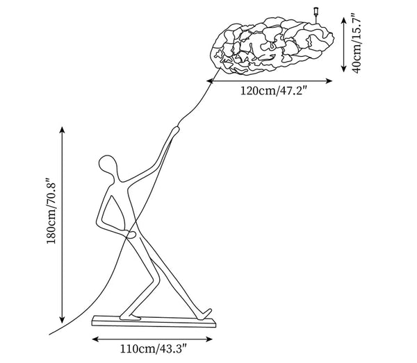 The Atlas Cloud Lamp captures the dramatic essence of modern sculpture and innovative lighting. Featuring a figure pulling an illuminated, cloud-like element, this piece symbolizes strength and imagination. The soft, diffused light complements the dynamic design, creating an eye-catching centerpiece. Discover this artistic lighting masterpiece at Lighting, where creativity meets illumination.
