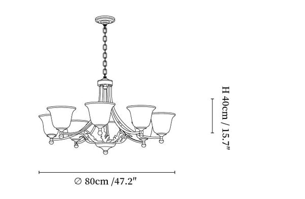 8-Lights Size: Dia 80cm x H 40cm / ∅ 47.2″ x H 15.7″