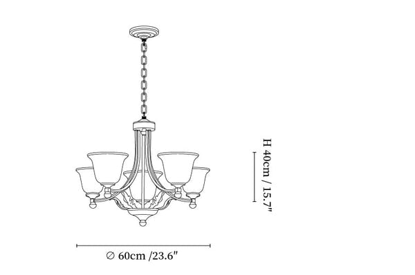5-Lights Size: Dia 60cm x H 40cm / ∅ 23.6″ x H 15.7″