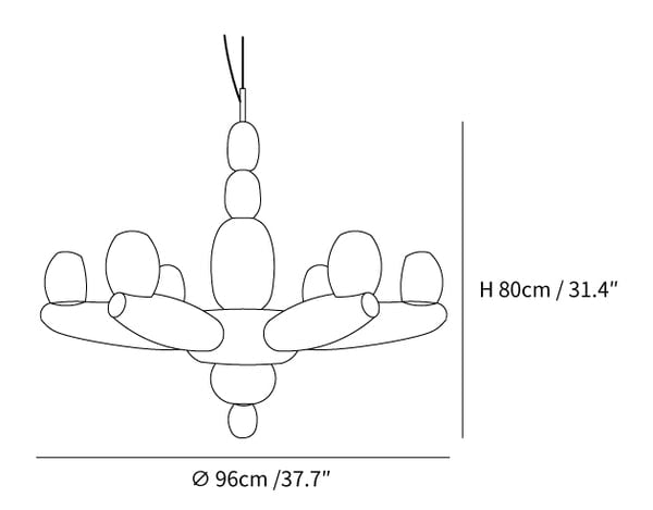Let the Balloons Chandelier add a touch of grandeur to your home décor. Its lustrous porcelain modules, offered in three luxurious colors, boast a glossy finish that reflects light and adds a polished look. Crafted with the finesse of artisans, this exquisite piece features intricate details that evoke the playful charm of balloon art and the sophisticated grace of hand-blown glass.