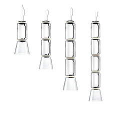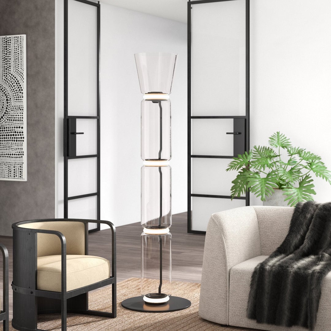 This Noctambule futuristic lighting system blends innovation, efficiency, and aesthetics. Its transparent hand-blown glass cylinder is surrounded by discrete LED technology on top and at the bottom, thus making the foundation of the lamp stylish and stunning. The user can attach additional components to the fixture in order to experiment with different styles of lighting. This helps create columns of light at varying heights that light up at the intersecting points between each module or unit.