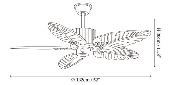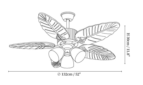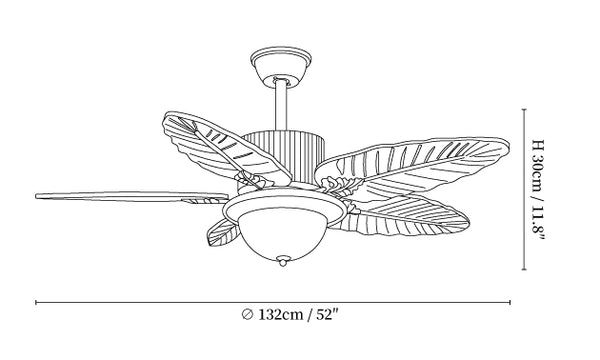 Materials: Metal frame, ABS blades, glass shade, pure copper motor.