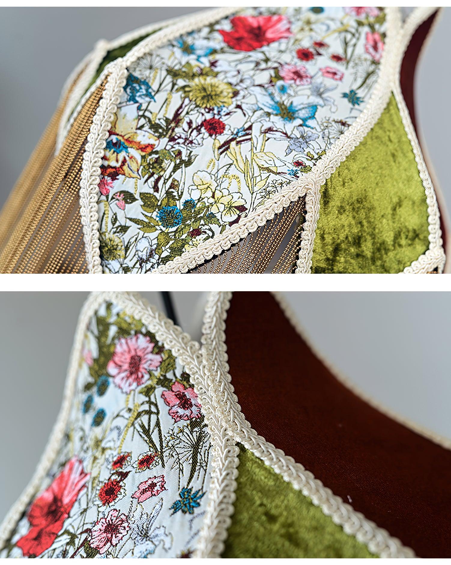 Perfect curves and voluptuous fringes, meticulously upholstered in our sumptuous velvet, feature a delicate floral pattern, with flowers sinuously and mysteriously intertwining to create a charming interior ambience.