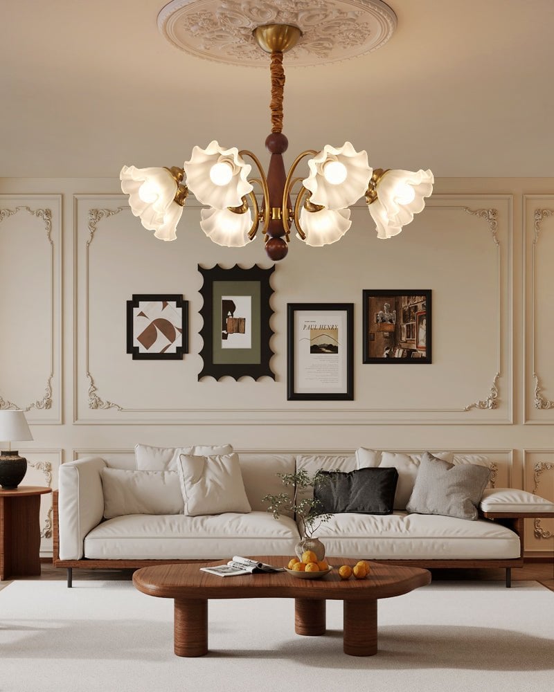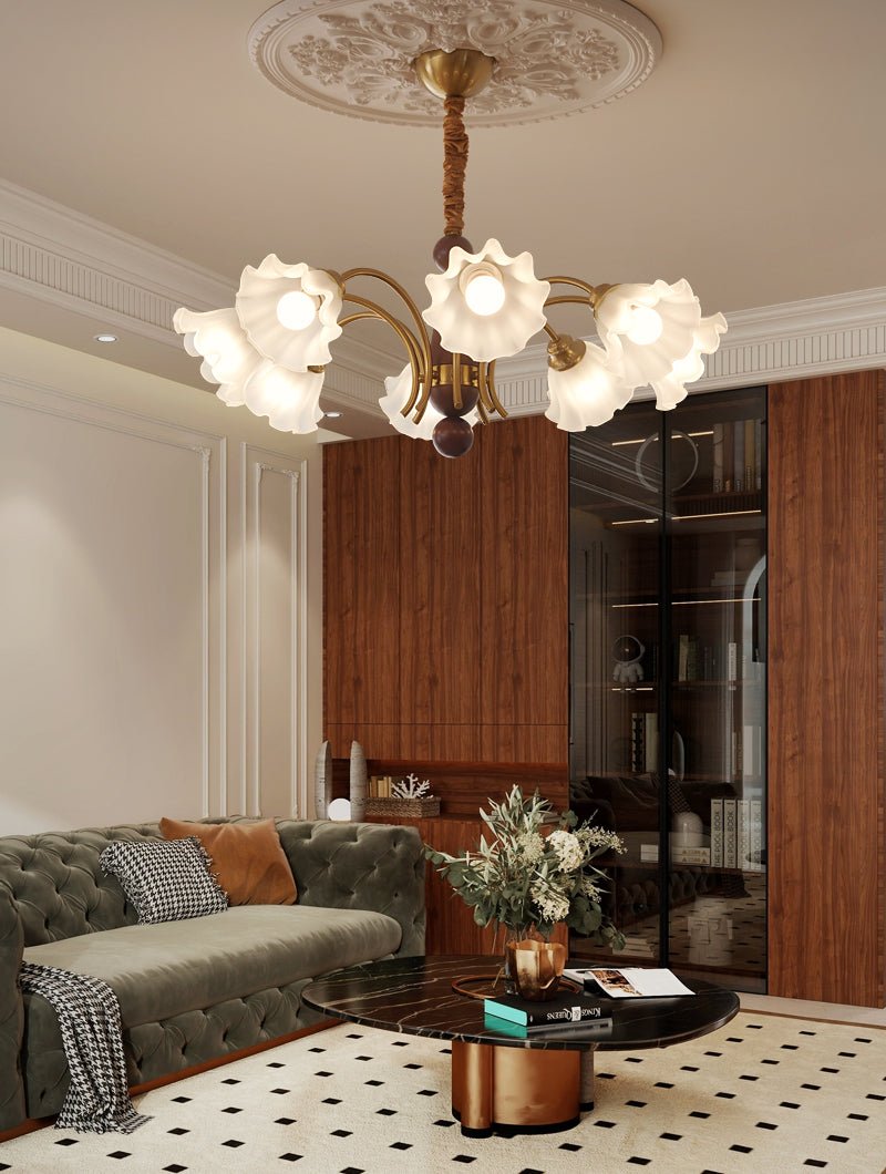 Lighting's Bloomcrest Chandelier draws inspiration from delicate flower petals, featuring beautifully crafted glass shades. Its graceful design infuses natural elegance into modern and classic interiors alike.