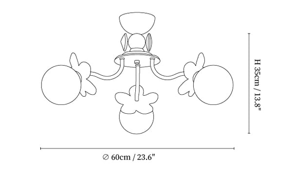 3 Heads Size: Dia 60cm x H 35cm / ∅ 23.6″ x H 13.8″