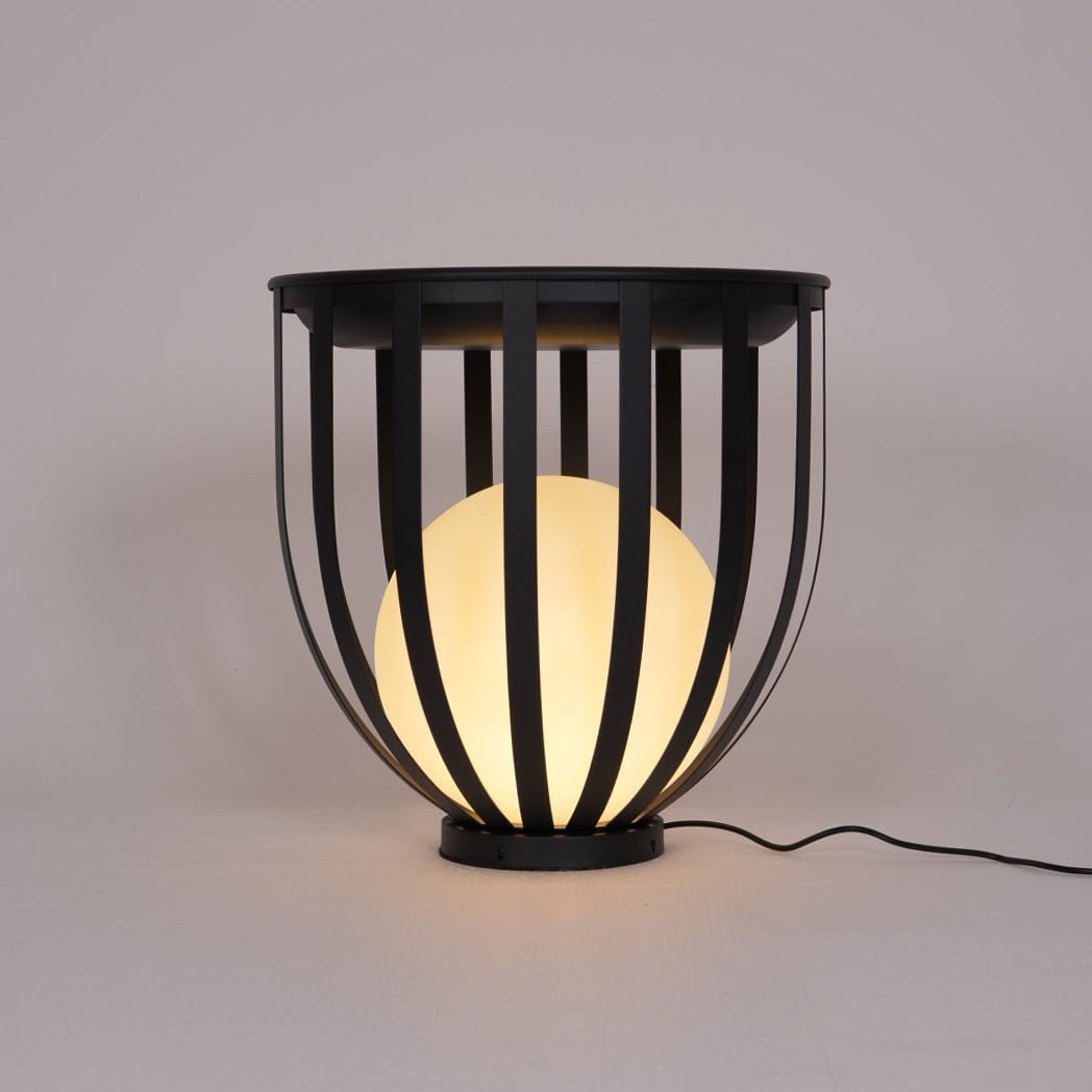 Bols Outdoor Lamp features acrylic shade and integrated dimmable LED. Double-layer coating for high resistance to corrosion and other environmental conditions. Possibility of adding a tray to use as a table, a flower set pot for natural or artificial vegetation, and an stainless steel bold down kit to fix on the floor.
