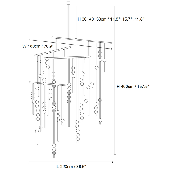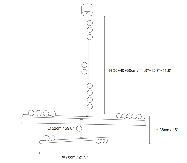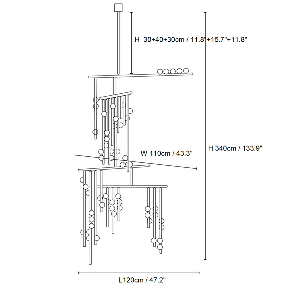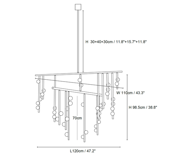 11.8″+15.7″+11.8″ Adjustable hanging height rod. Can be extended upon request.