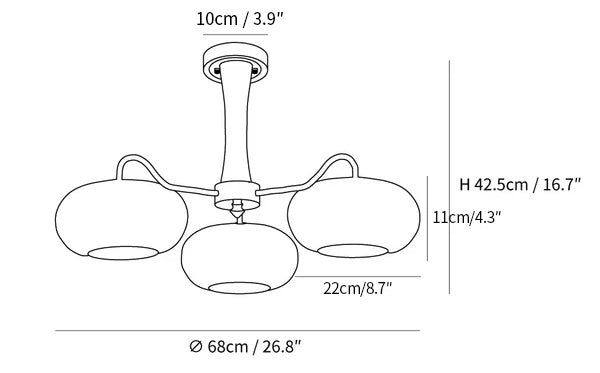 3 lamps Size: Dia 68cm x H 42.5cm / ∅ 26.8″ x H 16.7″