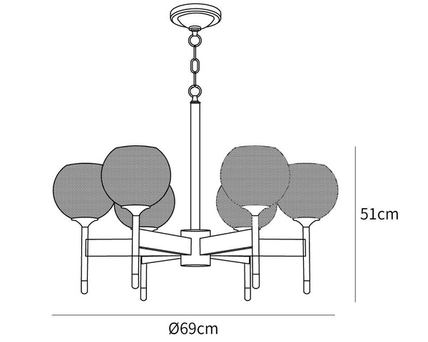6 heads Size: Dia 69cm x H 51cm / ∅ 27.2″ x H 20.1″