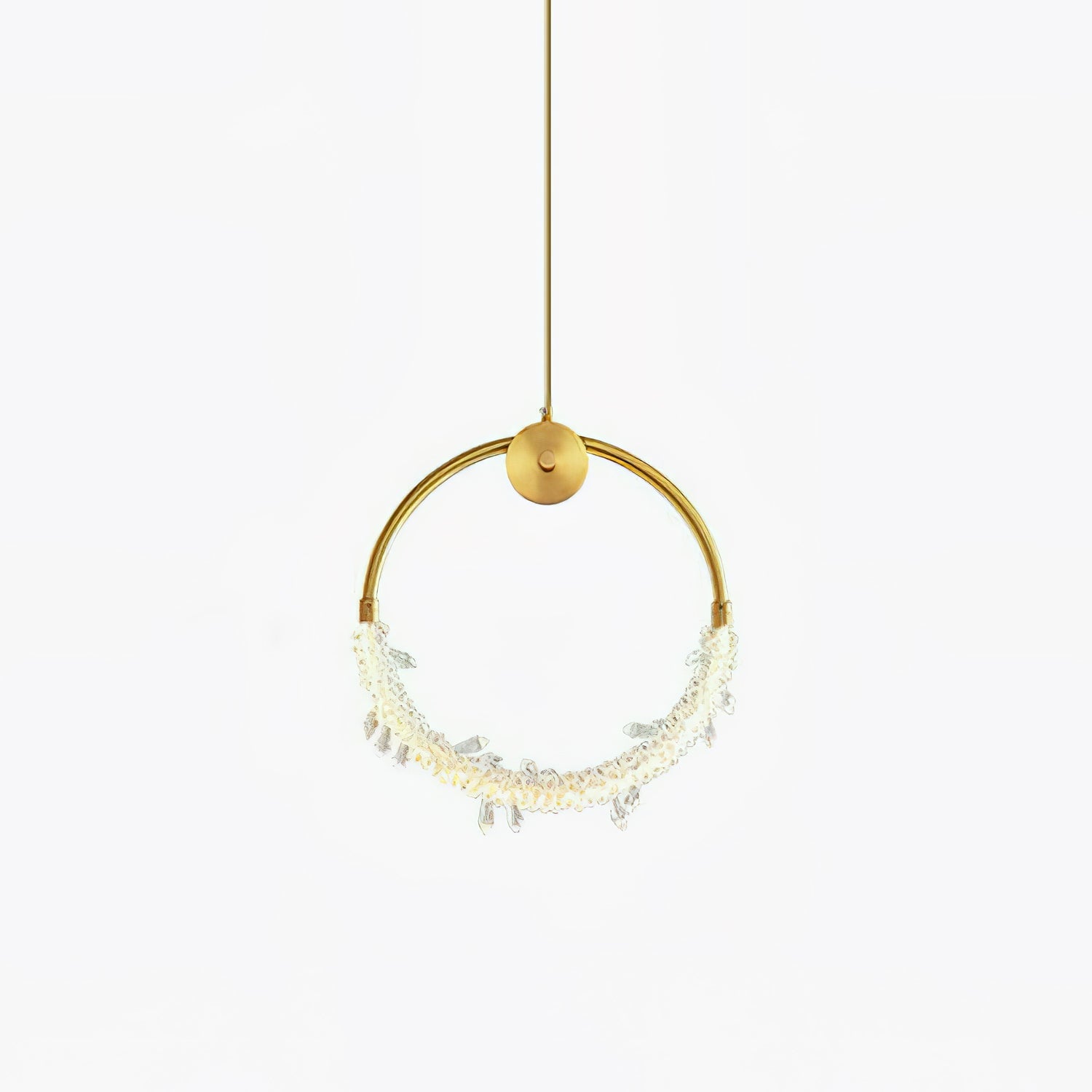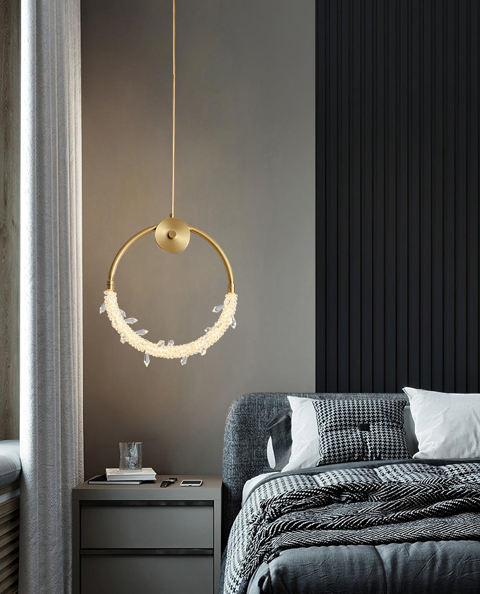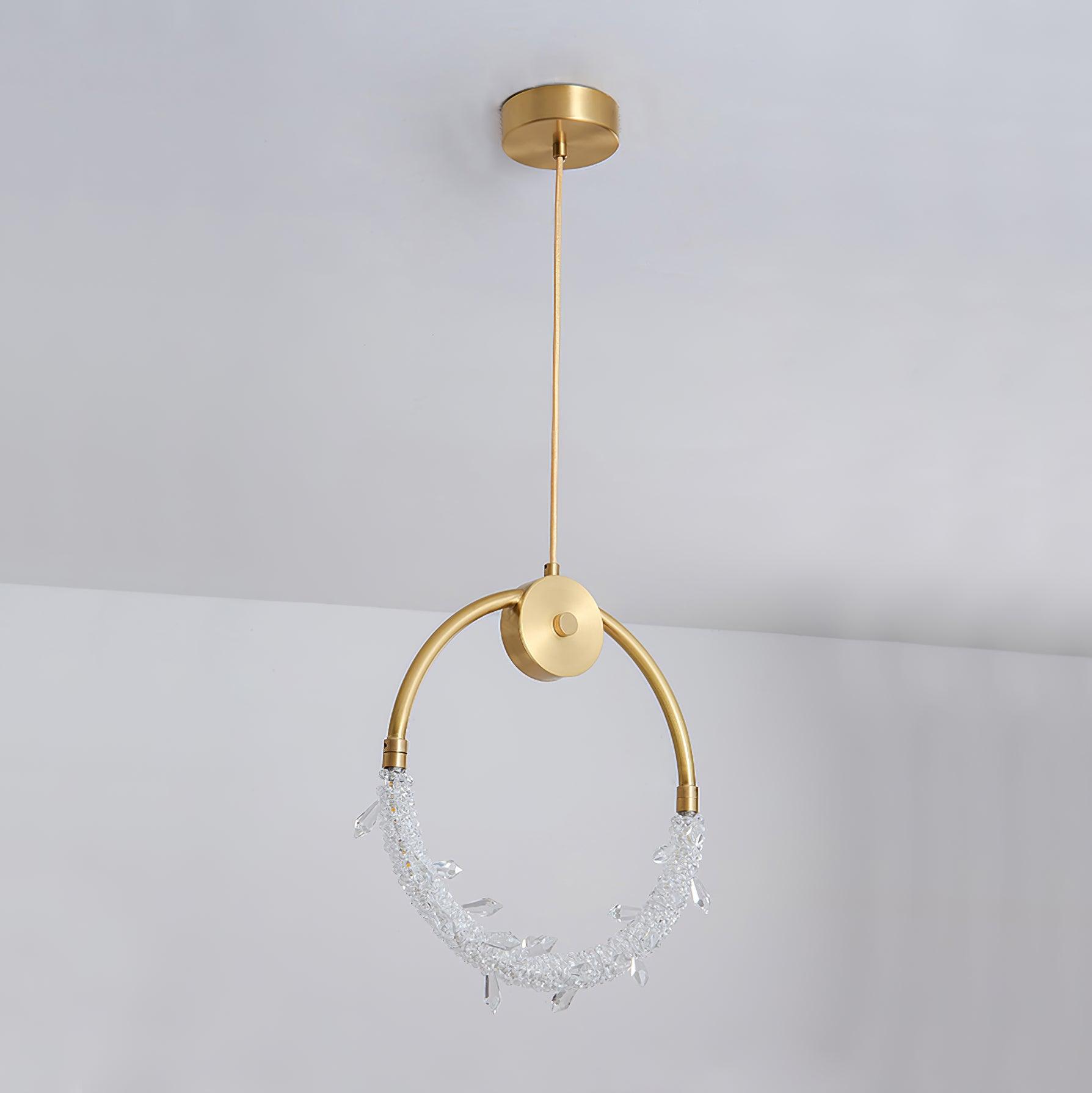 This exquisite crystal pendant lighting is in a gold finish. The frame is made out of iron with crystal beading in clear color. The LED bulbs are integrated into the frame. Install a pair of pendants in your entryway, or three over your kitchen island to create a cohesive look.